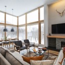Completed in 2019, the chalet showcases a modern Japanese design sensibility, featuring birchwood flooring, elegant feature walls, and spacious open-plan living and dining areas. Towering ceilings and two-storey windows flood the home with natural light and frame breathtaking views of the forest—and on clear days, the iconic Mt. Yotei in the distance.