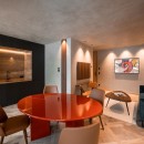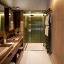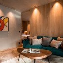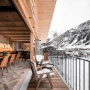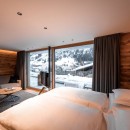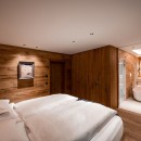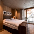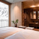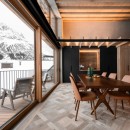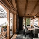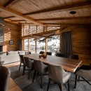 Chalet Athena, the opulent chalet offers five exquisitely designed bedrooms, along with a selection of three living, dining, and kitchen areas, all showcasing the epitome of sophisticated and upscale interior design. The spaces are adorned with a curated collection of designer and vintage furniture, complemented by breathtaking panoramic vistas of the Omeshorn.