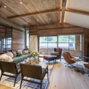 Adjacent to the living area is the dining space, where a table comfortably seats ten guests. Overlooking this area is a sleek, modern kitchen equipped with everything needed for meal preparation and ample storage space.