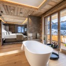 Part of the exclusive Chalech residence, the luxury chalet is one of five, just a ten-minute stroll from the village center and a three-minute walk from the Schlosskopf chairlift. The building also features a gym, indoor swimming pool, and tepidarium shared by all chalets, complementing the private spa facilities offered by Chalech M.
