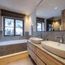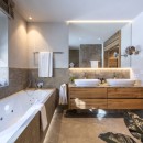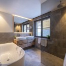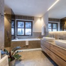 Descending to the lower floor, you'll find three more bedrooms and the chalet's superb spa facilities. The twin/double bedrooms on this floor also feature en-suite bathrooms with separate showers, TVs, walk-through closets, and desks. One bedroom has access to a terrace and a bubble spa bath. Both rooms are wired for Sonos, and all wardrobes are illuminated. There is also a bunk bedroom on this floor that shares a shower and WC with the spa.