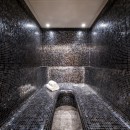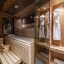 The tranquil spa area includes a sauna, hammam, reclining area, rain shower, and terrace access—perfect for reviving tired muscles after a day on the slopes. Guests can also use the shared gym or swim laps in the indoor pool.