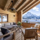 Large paneled windows offer breathtaking views of the mountains, while a sliding door opens onto a magnificent semi-enclosed deck, furnished with chic, comfortable furniture. A heater lamp makes this an ideal spot to unwind as the day fades and the lights of Lech begin to twinkle.