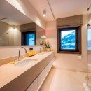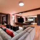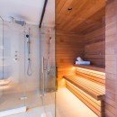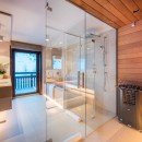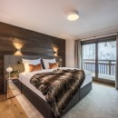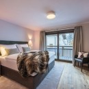 The grand master suite boasts a stunning double bedroom with a private dressing area and an en-suite bathroom that includes a separate shower and a private sauna. Additionally, two other bedrooms can be configured as twin beds or doubles and share a private shower room. On the opposite side of the apartment, there's another bedroom that can be set up as a twin or double, sharing a private shower room with an enchanting children's bunk room. Each bedroom has been thoughtfully adorned with distinctive calming tones and alpine-inspired touches.