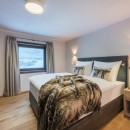 Occupying the second floor of the prestigious Nidus building, the apartment accommodates up to ten individuals across five bedrooms. Following an exhilarating day on the slopes, the apartment offers an ideal setting for unwinding with family or mingling with friends.