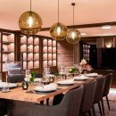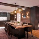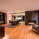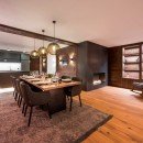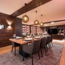 The living area, impeccably designed and spacious, features large sofas and stylish seating. Enhanced by a decorative fireplace and subtle lighting, this space provides warmth and coziness throughout the snowy winter months. Transitioning from the open-plan living area, you'll discover a delightful dining space capable of comfortably seating ten individuals. Framed by the stunning Alpine backdrop visible through every window, this area offers magnificent views of the snow-capped peaks and the enchanting village of Lech. The large French windows also extend to a beautiful terrace, creating an ideal setting for sunset gatherings with loved ones.