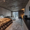 Inside, natural materials like wood and stone create a warm, inviting ambiance, seamlessly paired with cutting-edge technology. Each of the seven private suites can be individually controlled via iPad, allowing guests to tailor lighting, sound, and atmosphere to their mood. Walk-in wardrobes, minibars, Nespresso machines, and private balconies or garden access add to the sense of comfort and quiet sophistication. Select suites also feature open fireplaces and smart WCs, perfect for unwinding after a day in the mountains.
