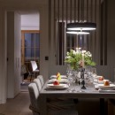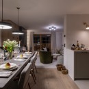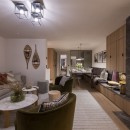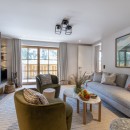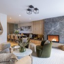 Stepping into the apartment, you're greeted by an abundance of natural light that graces the open-plan living and dining area. This space effortlessly epitomizes alpine chic, showcasing a sophisticated modern design that exudes a sense of comfort and style. Meticulously finished to the highest standards, the apartment seamlessly blends contemporary fixtures, a soft and harmonious color palette, and luxurious fabrics to create a truly captivating ambiance. An inviting open fireplace, neutral tones, and accents of moss green establish a serene and hospitable atmosphere within the living area. The dining section, adorned with evocative lighting, accommodates six guests in graceful elegance. The modern open kitchen is fully equipped to cater to even the most discerning culinary tastes.
