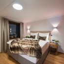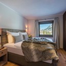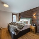 Adjacent to the living area, another double room awaits, featuring a comfortable king-size bed. Additionally, there's a guest WC and a meticulously designed bathroom complete with a spacious bath, perfect for indulging in a post-skiing soak.