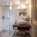 The chalet includes a private boot room with heated boot warmers and access to a shared covered terrace with outdoor fireplace and seating—perfect for après-ski moments.