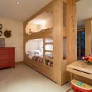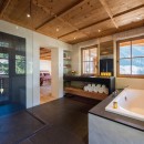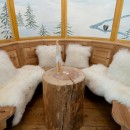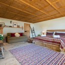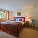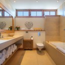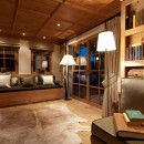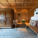 One of the other twin/double bedrooms has been transformed from an old Tyrolean "zirben-stube" and retains antique carvings as well as a fully functional traditional stove. This bedroom also features an en-suite bathroom. Additionally, there is a further twin/double bedroom and a quad bunk room, one with a private bathroom and the other with a private shower room. All bathrooms are finished to the highest standards, with materials like limestone and oak or black stone and grey tadellakt. The floors throughout the chalet, including the library and doors, have been crafted from 300-year-old oak planks.