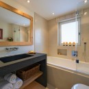 Bedroom 5: Upper ground floor bedroom with a double bed (can be converted to two single beds), WiFi, desk and en-suite bathroom with bathtub, vanity and WC. 2 guests maximum.