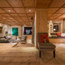 Upon entering the chalet, you step into its primary living area. Here, you'll find an expansive drawing room, an open-plan living and dining space with a sunken sitting area, and floor-to-ceiling French windows that open onto the southwest-facing terrace. The large open fireplace and the warm, sumptuous fabrics create the ideal ambiance for relaxation, unwinding, or entertaining following a day on the slopes. Throughout the chalet, numerous rooms capitalize on breathtaking views of the surrounding mountains.