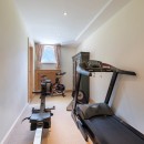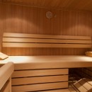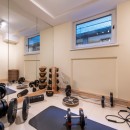 The lower ground floor boasts an additional twin bedroom with an en-suite bathroom. A sunny 40-square-meter playroom on this floor serves as the perfect space for entertaining children and can also be converted into a high-tech cinema room. Furthermore, there's a splendid sauna/steam room that comfortably accommodates four people, complete with a separate shower area and toilet. The lower ground floor also houses a laundry room, a professional kitchen, and a ski locker.