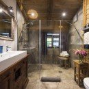The master bedroom is a tranquil haven nestled in the chalet's eaves. It boasts a generously sized double bedroom with an office area, a sitting area, and a sunken bathtub. Across the private landing, you'll find the en-suite shower room, offering captivating views from this elevated vantage point.