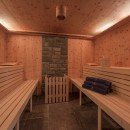 After a day on the slopes, you can conveniently access the shared ski room directly from the piste, providing ample storage for ski gear, clothing, hats, and gloves. Post-skiing, indulge in your private gym, rejuvenate in the sauna and massage room, or take a dip in the terrace's hot tub. This floor also boasts a cozy cinema room with comfortable sofas, perfect for late-night movie sessions.