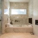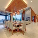 Five elegant bedrooms, each with king beds and ensuite bathrooms featuring walk-in showers and Japanese bidet toilets, ensure utmost comfort. The sixth bedroom, perfect for children and a nanny, offers six twin XL beds and additional amenities, including a television and desks for remote learning.