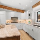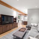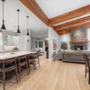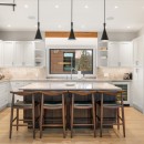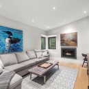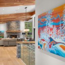 Upon arrival, guests will be welcomed by a captivating water feature gently cascading down the slate wall, seamlessly blending the beauty of nature with the indoor space. Each room showcases a stunning collection of renowned Canadian artists' works. As you ascend the stairs, your gaze will be drawn past the contemporary chandelier, revealing the open-concept kitchen and living area on the main floor. The expansive dining table can comfortably accommodate 10 individuals, complemented by an additional 4 seats around the island bar.
