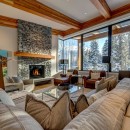 For added convenience, there is a finished garage with parking for two vehicles, along with ample space for storing outdoor sports equipment, including ski/snowboards, a bike rack, boot heaters, and a workbench. The property is equipped with heated floors throughout, as well as Control4 technology for managing heating, automatic window coverings, the sound system, and the waterfall features. Additionally, air conditioning ensures a comfortable stay during the summer months, making Stoneglade an ideal choice for seasonal rentals.