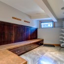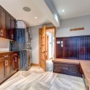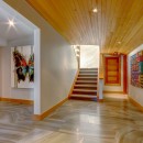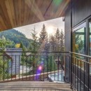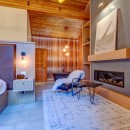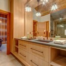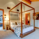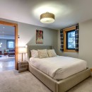 The entry level further comprises a smaller sixth bedroom with a double bed, a separate bathroom, a mud room designed to accommodate ski gear with boot heaters, laundry facilities, and a single garage.