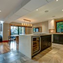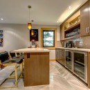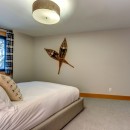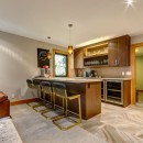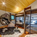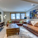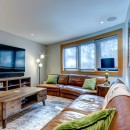 Snowridge presents the ideal fusion of a classic ski chalet ambiance and contemporary decor, making it a perfect retreat for groups of up to 10 adults and 4 children. As you step into the main level, you'll encounter a cozy den furnished with a 65" television and a wine bar. This delightful space, shared with the fifth bedroom featuring a queen bed, is an excellent area for kids to enjoy movies, complete with a popcorn machine and a mini-fridge. A separate full bathroom is also conveniently located on this level.