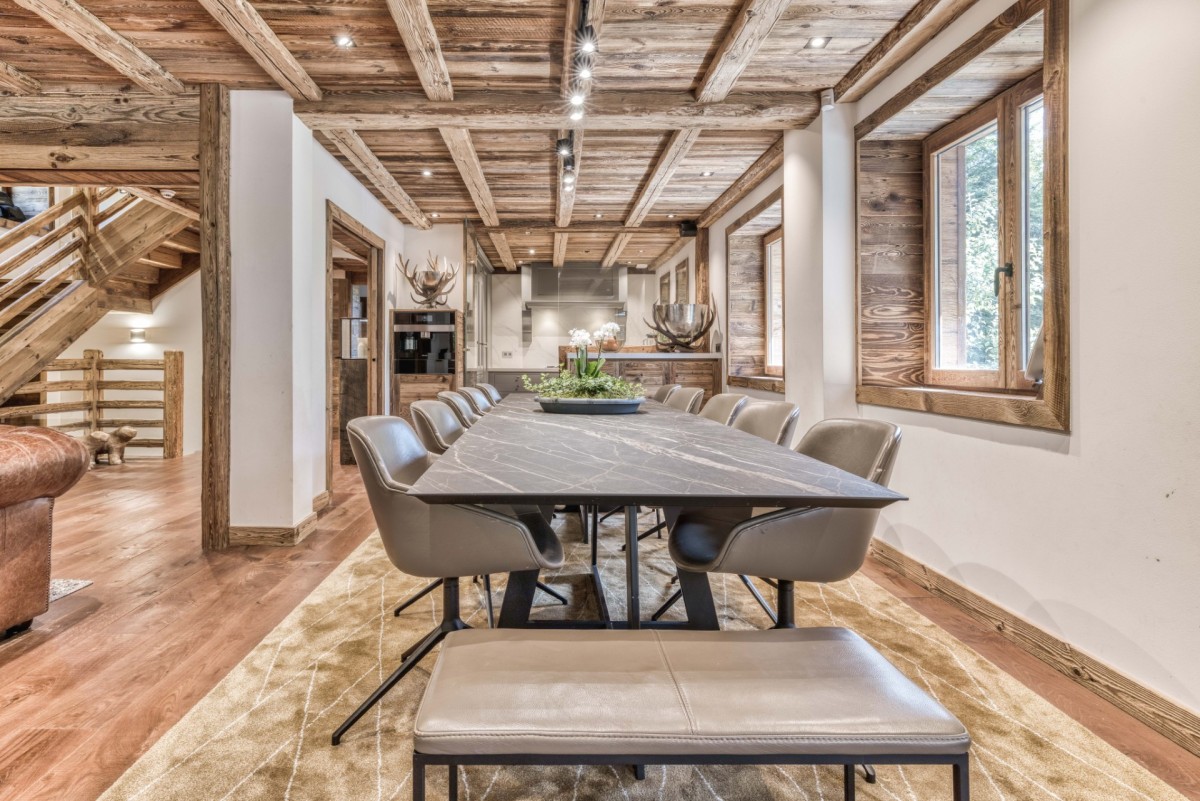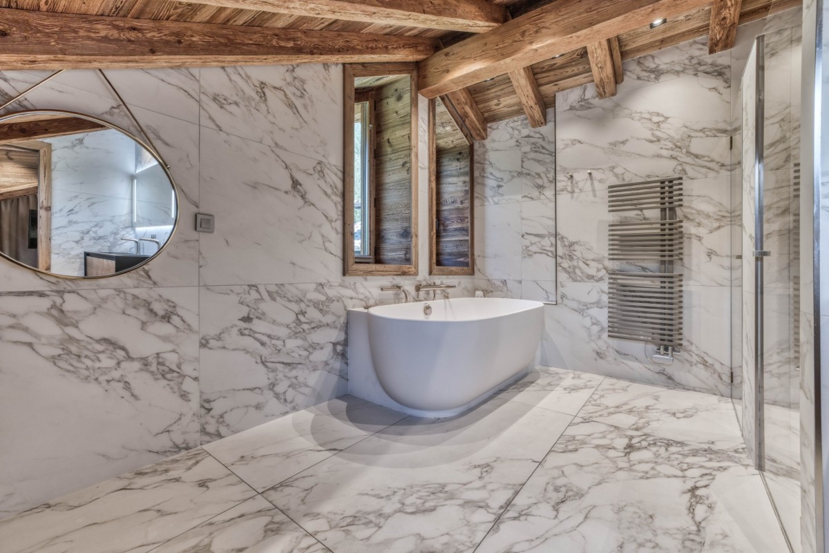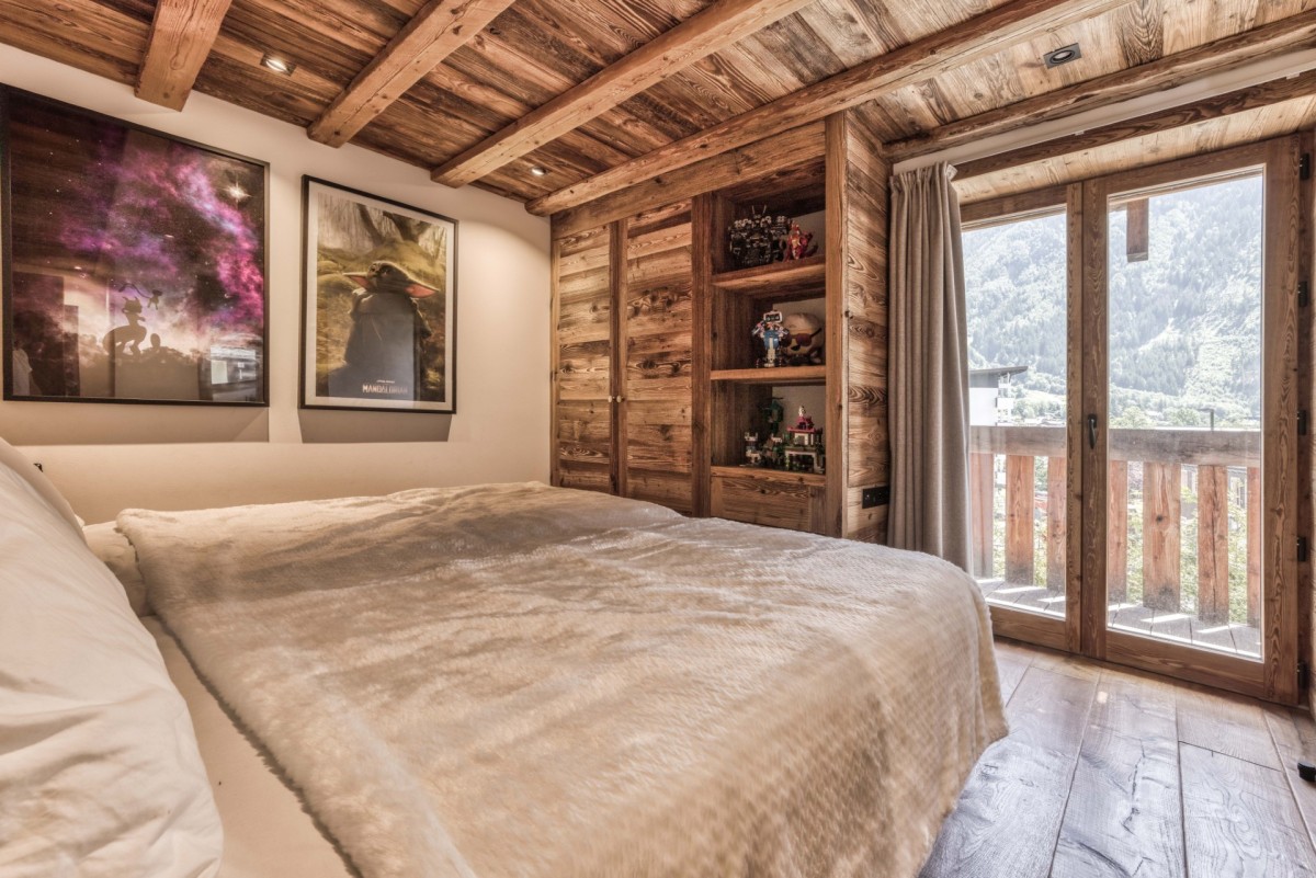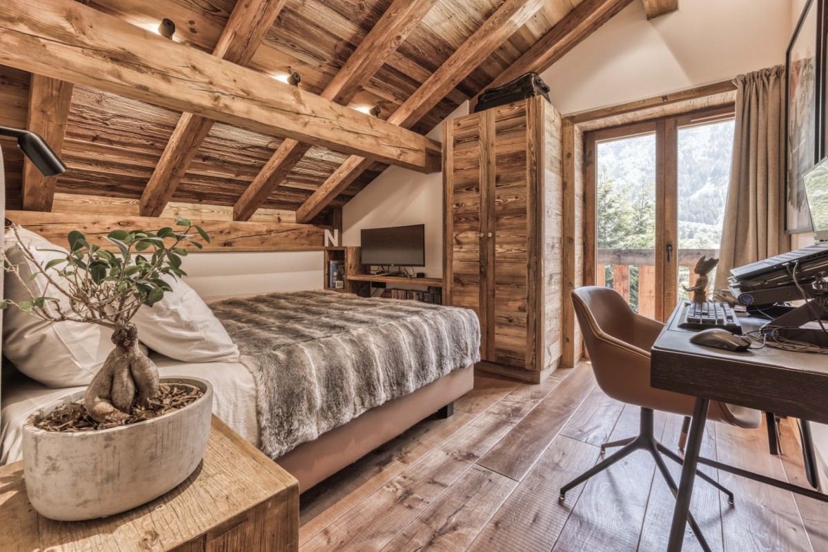 Crowning the chalet is the stunning master suite, offering sweeping views of Mont Blanc. This luxurious space includes a generous dressing room and a spa-inspired bathroom, creating a true sanctuary of comfort and style.