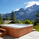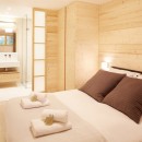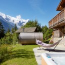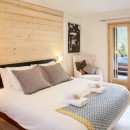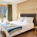 Bedroom 1: Lower floor bedroom with a king-size bed, dressing area, private access to outdoor terrace with Jacuzzi and Scenic Jacuzzi, superb views of the Mont Blanc and Le Dru and en-suite bathroom with shower, vanity and WC. 2 guests maximum.