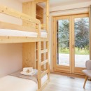 Bedroom 3: Lower floor bedroom with two bunk beds, private access to outdoor terrace with Jacuzzi and Scenic Jacuzzi, superb views of the Mont Blanc and Le Dru and shared bathroom with bathtub, shower, vanity and WC. 2 guests maximum.