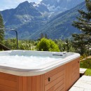 Bedroom 2: Lower floor bedroom with a king-size bed (can be made up as two single beds), private access to outdoor terrace with Jacuzzi and Scenic Jacuzzi, superb views of the Mont Blanc and Le Dru and shared bathroom with bathtub, shower, vanity and WC. 2 guests maximum.