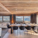 A three-story property, it is wrapped with an abundance of classic balconies. The ground floor is home to a stunning wellness area with a full-sized swimming pool, ski room, shower room and hot tub. The next level takes you to the shared living spaces that include the home theater and the great room. This is an iconic space with high wooden ceilings, a massive fireplace, and banks of glass doors that open to the scenery and the balcony. With a formal living room, a graciously appointed dining room, and truly remarkable modern kitchen, this space is sure to prove appealing to all.