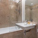 Bedroom 4: First floor bedroom with a double bed (can be made up as two single beds), TV, WiFi, and en-suite bathroom with bathtub, vanity and WC. 2 guests maximum