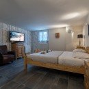 Bedroom 1: Upper floor master bedroom with a double bed and en-suite open bathroom with bathtub, vanity and WC. 2 guests maximum.