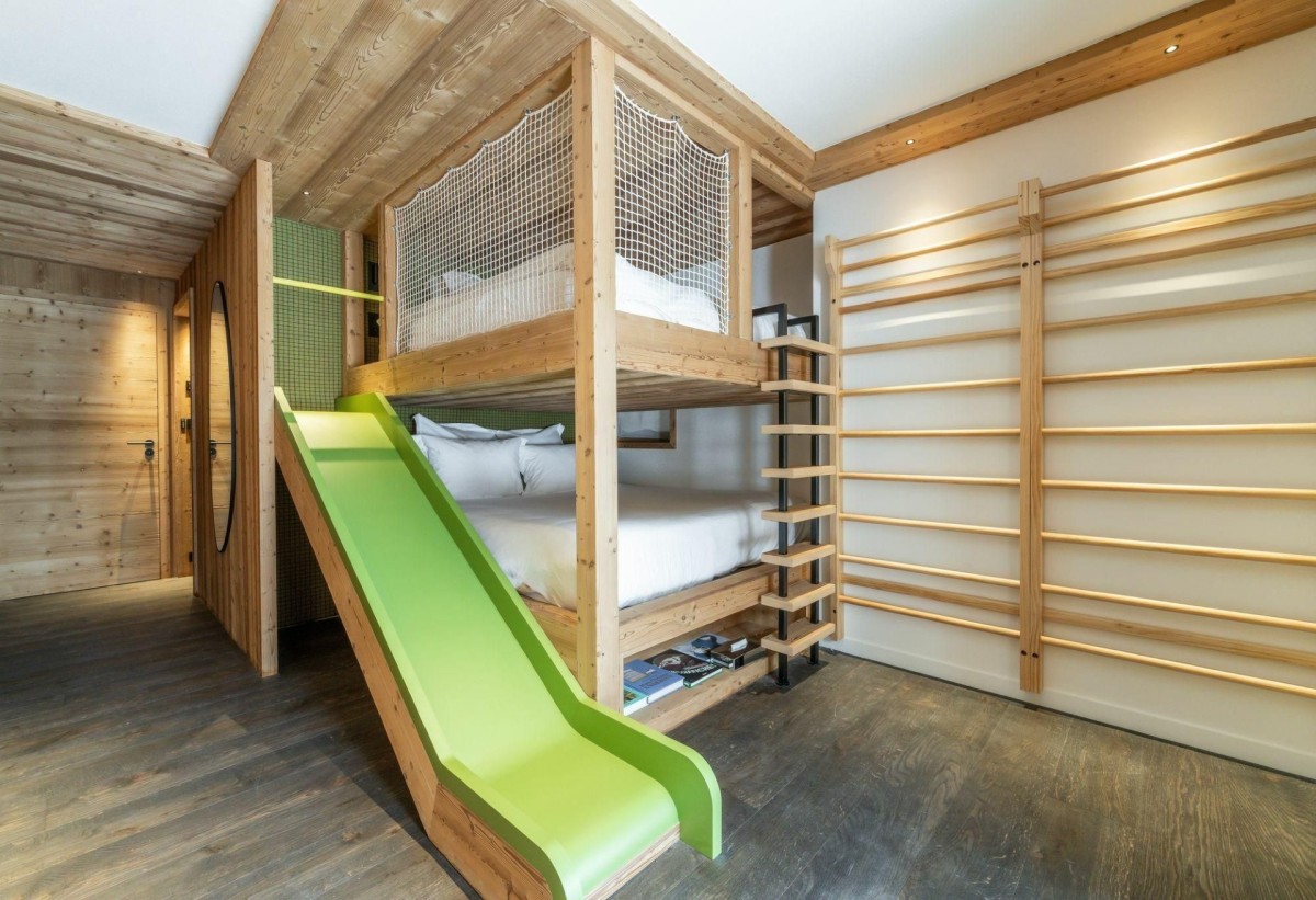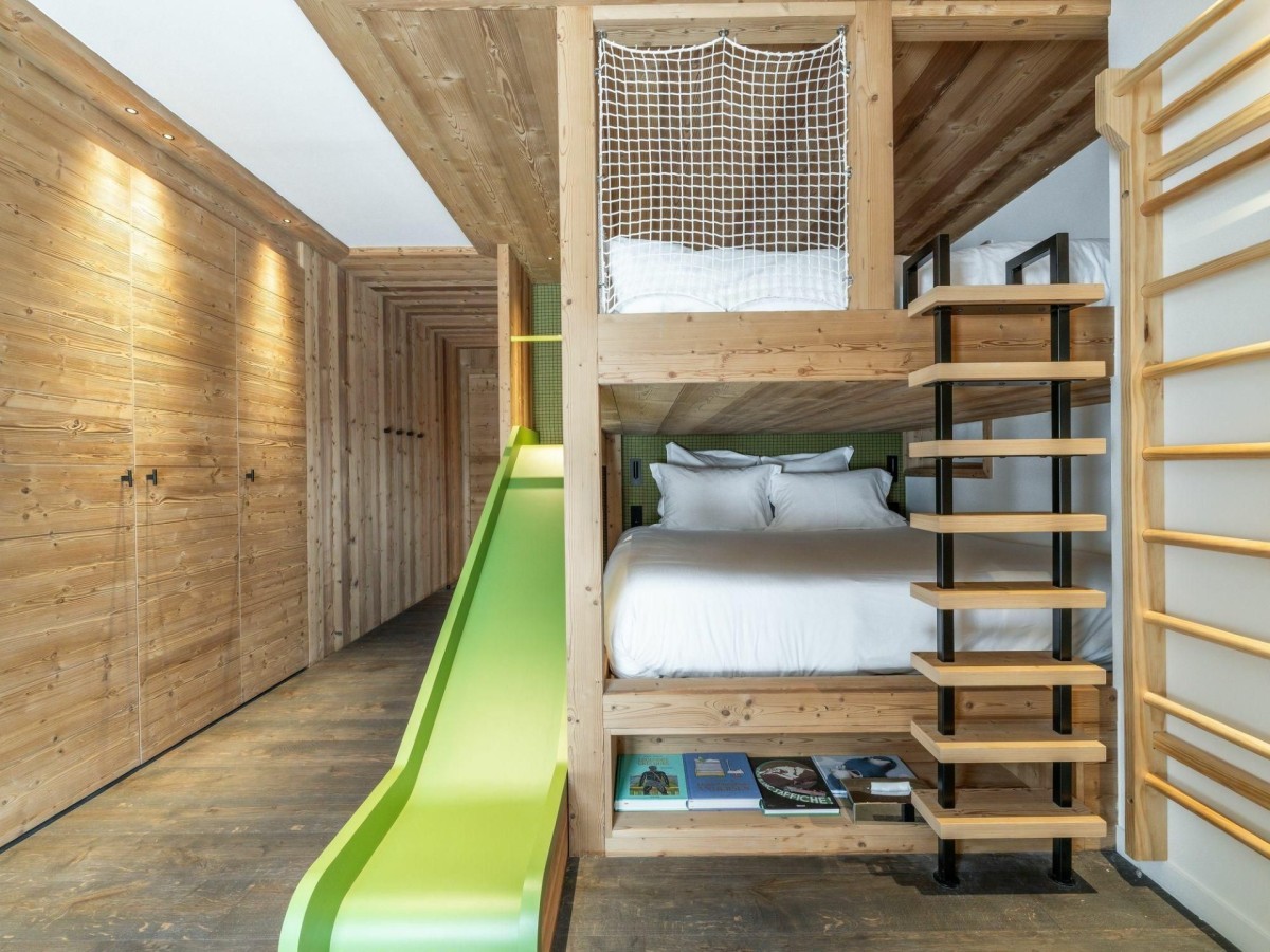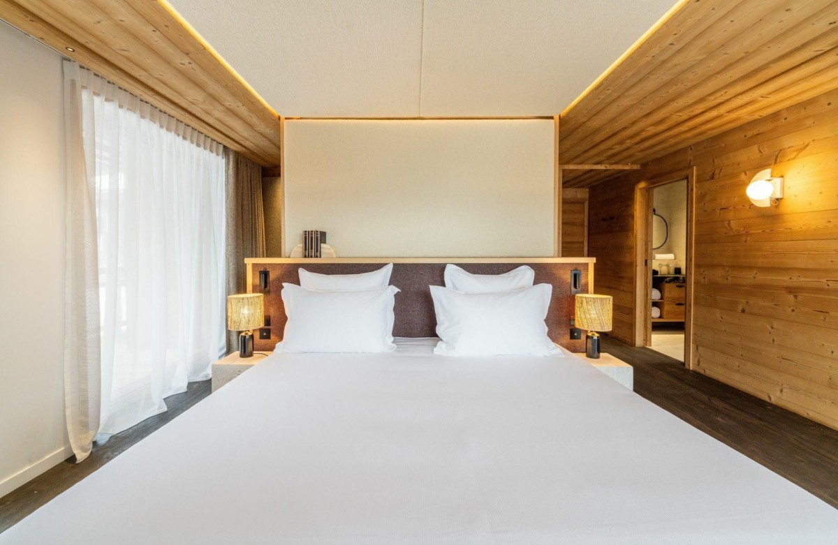 Spread across four levels and built around a striking central staircase, the chalet features refined architecture combining natural stone and wood. The interior is meticulously crafted, featuring soft tones and calming materials to create a welcoming and sophisticated ambiance.