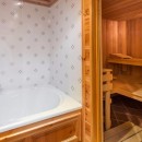 The bedrooms are spread out between floors for optimal scenery and privacy. Four are on the ground floor and three of them offer dual twins that can be converted to a king bed. Three of them have access to a balcony, and all of them provide guests with large and beautifully appointed ensuite baths. The final bedroom is on the first floor and is similar in design to the others, but without balcony access. This floor also features the ski room and the sauna suite.