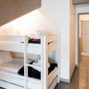 Bedroom 3: Bedroom with two single bed and bunk beds, TV,  access to balcony and en-suite bathroom with bathtub, vanity and wc. 4 maximum