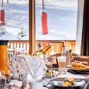 Guests are granted complimentary access to the resort's two exceptional spa and wellness centers, renowned for their world-class amenities. These include both indoor and outdoor heated communal pools, a hammam, a sauna, a fitness room, and private treatment chambers. The restaurant offers an atmospheric dining experience, overlooking the majestic snowy peaks, and can be exclusively reserved for intimate gatherings upon request. The resort proudly extends an array of personalized services, from concierge assistance and chauffeur services to meticulous housekeeping and the expertise of a private chef.