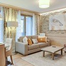 Imbued with a sense of subtle elegance, Carré Blanc's apartments are thoughtfully adorned in soft, inviting hues that exude an air of discreet sophistication and refinement. Light oak paneling and rugged stone elements pay homage to the surrounding Alpine landscape, while contemporary furnishings and lighting elements harmonize seamlessly with the overall ambiance.