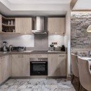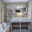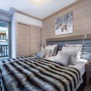 With an elegant Alpine flair, this apartment accommodates up to six individuals across its two bedrooms. Each bedroom boasts a private bathroom or shower room, alongside a balcony. The space forms a truly inviting retreat for guests. Complementing this, a modern kitchen, dining area, and living room with a sofa bed extend to a balcony.