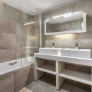 This spacious abode spans 124 square meters and accommodates up to 8 individuals. It comprises two opulent double bedrooms, each featuring its private en-suite bathroom, alongside a third bedroom offering the flexibility of either two single beds or a double bed. Additionally, a fourth bedroom boasts two cozy bunk beds. The open-plan design seamlessly integrates the living room, dining area, and kitchen, adorned with elements of light wood, gentle hues, and sumptuous materials that collectively cultivate a serene ambiance. Expansive bay windows lead to a generous balcony, inviting you to relish panoramic views of the enchanting Dent du Villard and the snow-clad peaks.