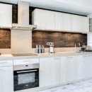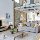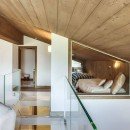 Spanning 185 sqm, this duplex comfortably accommodates up to 11 guests. It boasts four ensuite double bedrooms and one children's bedroom equipped with three single beds. The open-concept living room exudes a soothing ambiance, achieved through the thoughtful selection of materials: light-colored parquet flooring, untreated oak, and indigenous stone accenting the walls, a floor with the appearance of marble, and whitewashed furnishings in the kitchen area. Abundant natural light gracefully flows between the two levels, facilitated by a glass floor that houses a cozy reading nook on the first level.