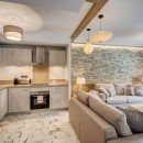 The interior decor harmoniously merges raw elements like wood and stone with soft textiles, expertly fusing the ambiance of the mountains with contemporary elegance. Each space offers a warm and sophisticated ambiance that promises to envelop you.