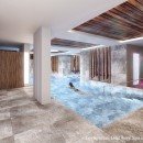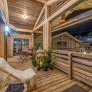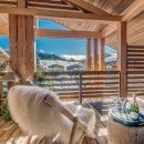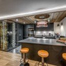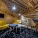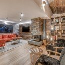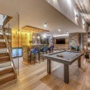The apartment boasts an exceptional large entertainment area equipped with a bar, pool table, additional relaxation zones around a fireplace, and well-stocked drinks fridges ready to be filled with your favorite après-ski indulgences. This extensive open living and entertainment space extends to two separate balconies at each end, as well as a spacious terrace at the center, all offering stunning panoramic views of the resort from the vantage point of the third floor.
