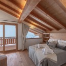 Spanning 378m², Chalet Combe Loup 3 includes a gym on the ground floor and a private wellness area featuring a swimming pool, jacuzzi, and sauna. The first floor is dedicated to the main living space, complete with a fireplace and a large balcony offering panoramic views. Upstairs, you'll find four double bedrooms and a dedicated children’s room, comfortably accommodating up to 12 guests.