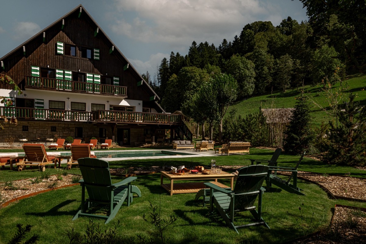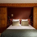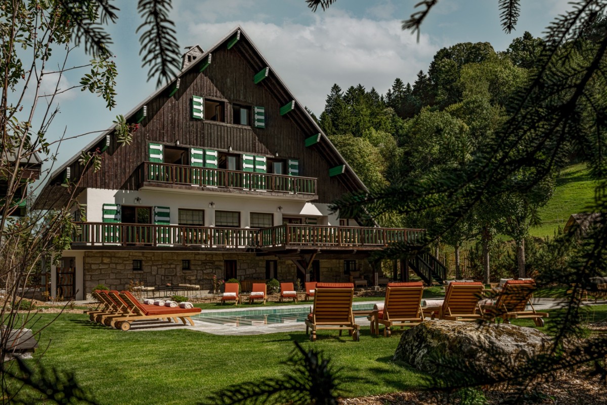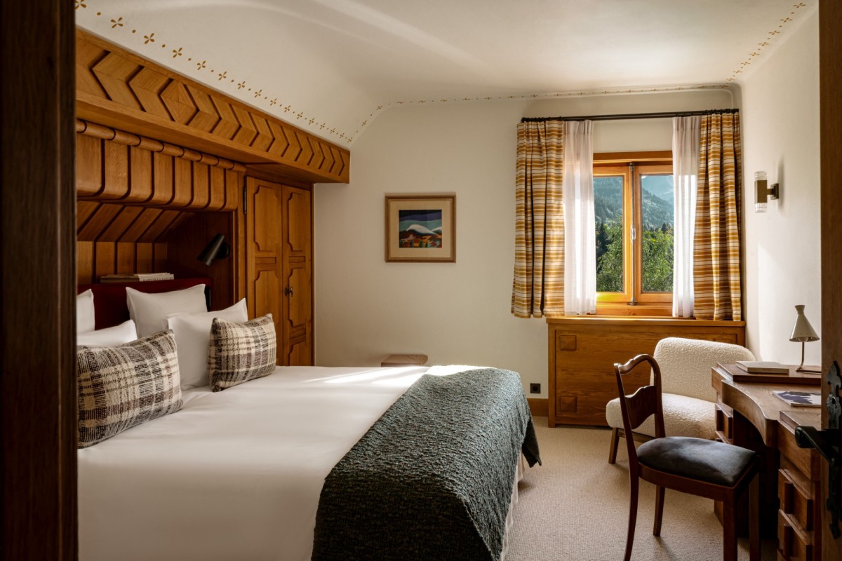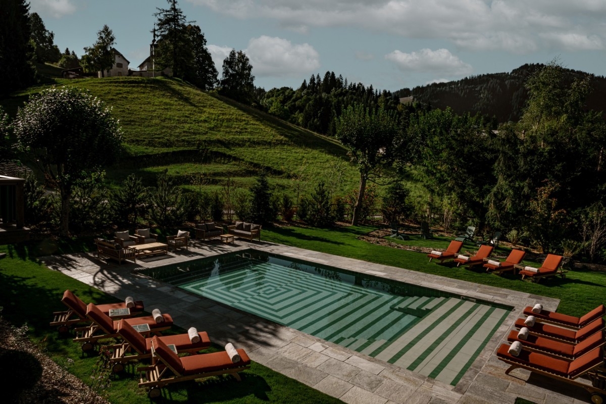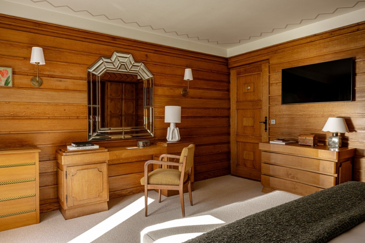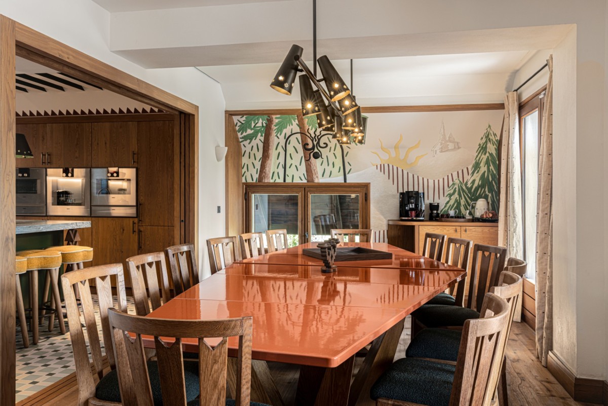 With its Art Deco lines, intricate woodwork, bold colors, geometric motifs, ornamental accents, and touches of Scandinavian folklore, the chalet has been reimagined through a meticulous two-year renovation in collaboration with CLAVES architecture studio. The result is a true homage to Henry Jacques Le Même — a pioneer of 1930s Alpine design and the originator of the iconic “Skier’s Chalet.”