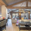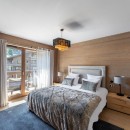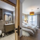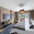 The duplex Stallion D22, boasting an impressive 228 sqm of space, offers luxurious accommodation for up to 14 guests. Positioned on the top floor of the residence, this apartment provides breathtaking views of Rochebrune Hill with Mont-Blanc in the backdrop. The upper level features an open-plan design with a modern kitchen, dining area, lounge, and TV room. A double-sided stone fireplace adds a cozy touch, and the space extends to a terrace perfect for sunny lunches. The lower level is dedicated to restful nights, featuring four double bedrooms and a dormitory with six bunk beds.