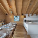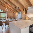 Designed to blend seamlessly with the stunning Alpine surroundings, Chalet Palou features traditional mountain architecture with light wood and stone exteriors, creating an authentic and welcoming atmosphere. Inside, the chalet boasts a refined, harmonious decor that enhances its warm, natural ambiance. Large bay windows throughout the property allow natural light to flood the space, further amplifying the sense of openness and comfort.
