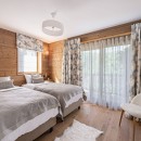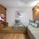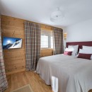 Spread across four levels and covering 195 square meters, the chalet comfortably accommodates up to 12 guests in its five bedrooms. The layout includes four double bedrooms, each with its own private bathroom or shower room, along with a master bedroom that offers a personal sanctuary. All rooms feature private balconies where you can relax and enjoy the breathtaking panoramic views of the surrounding mountains. The TV room can also be transformed into a twin room, making it ideal for children or extra guests.
