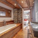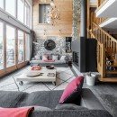 Inside, the chalet exudes opulence and comfort. The spacious living areas are adorned with rustic yet elegant furnishings, creating a warm and inviting atmosphere. Floor-to-ceiling windows offer panoramic views of the surrounding snow-capped peaks, allowing you to immerse yourself in the stunning scenery from the comfort of your chalet.