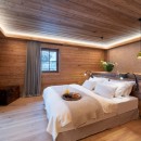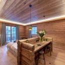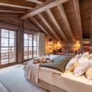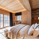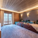 The chalet's six bedrooms are beautifully finished with quality fittings, soft lighting, and tasteful, luxurious fabrics. Decorated in shades of muted forest greens and warm earthy tones, all rooms feature large windows or balconies that offer stunning views of the surrounding landscape.