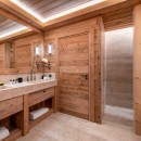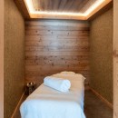 The spa in Domaine de l'Orme, located on the lowest floor, is a true haven to revive yourself after busy or chilly days. It features a large indoor swimming pool, hammam, massage room, relaxation area, and a stunning sunken wooden outdoor hot tub. Soaking in the outdoor hot tub, surrounded by sparkling snow and absolute privacy, you'll enjoy the crisp winter air, the trees, and the vast mountains – an idyllic scene.